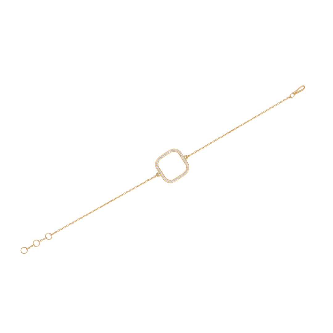 It’s a simple, elegant and lightweight piece perfect for everyday wear or layering with other bracelets. At the center lies an open, rounded-square charm in diamonds clean, geometric, and subtly distinctive—bringing a modern twist to the bracelet’s minimalist design.