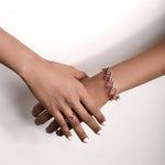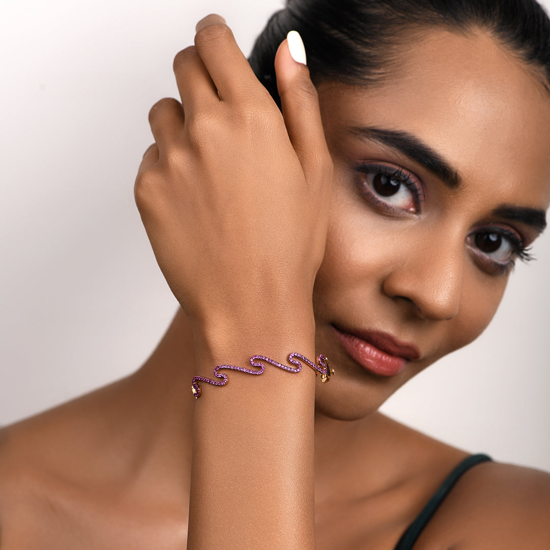 These vibrant bracelets, inspired by the ocean's waves, are set with Pink Sapphires. These bracelets come in different coloured stone options.